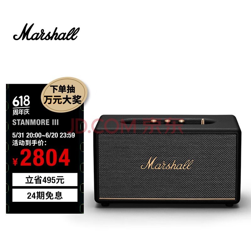 京东618大促,马歇尔STANMORE III蓝牙音箱低至2453.7元!这款音箱号称拥有宽广的声场,能传递出Marshall标志性的音效。它配备向外倾斜的高音单元和新版导波管,并搭载双向驱动单元系统,内置动态响度有助于调节声音平衡,在各种音量下都能带来卓越的音质。