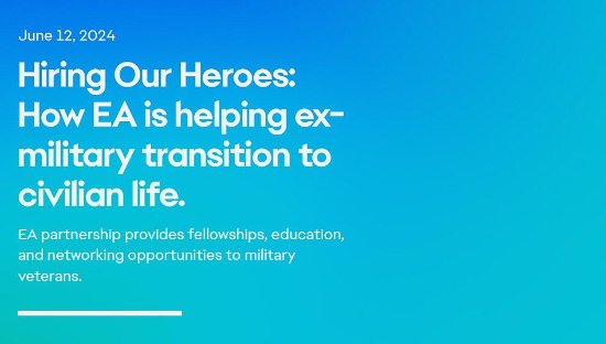 近日,电子艺界(EA)在其官方网站上分享了一篇文章,介绍了公司推出的“雇佣我们的英雄”计划。该计划旨在通过雇佣退伍军人,并为他们提供奖学金、教育和社交机会,在游戏开发过程中得到他们的支持。