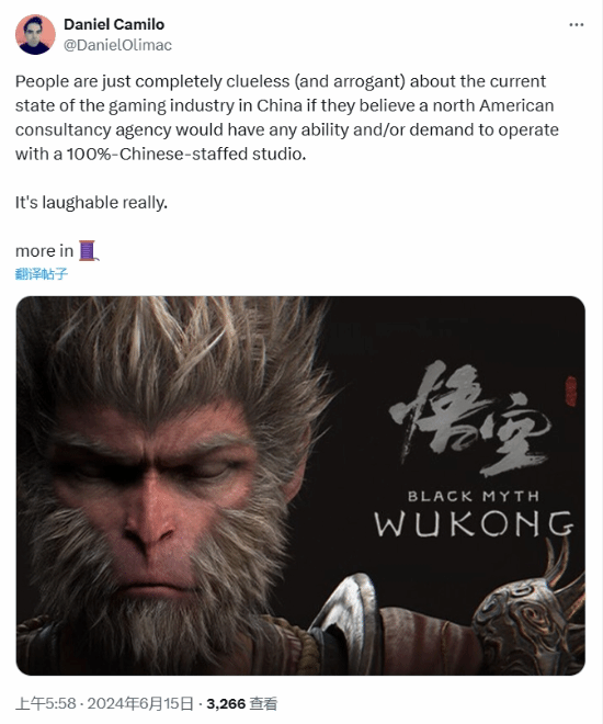 Camilo还提到,像Sweet Baby Inc这样的国际公司很难在中国找到市场需求,即使是像《黑神话:悟空》这样具有全球野心的项目也不例外。此外,他认为,一个西方公关公司在中国的语境中提出700万美元的服务费用简直是难以想象的,并表示不相信Sweet Baby Inc曾向游戏科学提出这样的报价。