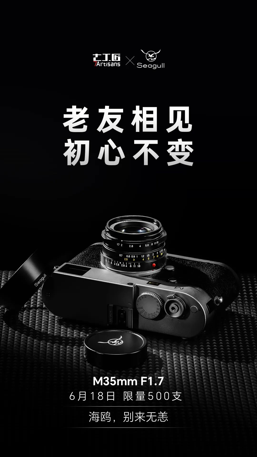 六月十八日发售的海鸥M35mm F1.7镜头受到独立摄影师的广泛关注。这款镜头是由七工匠与海鸥合作打造的产品,限量供应五百支,但售价尚未公布。