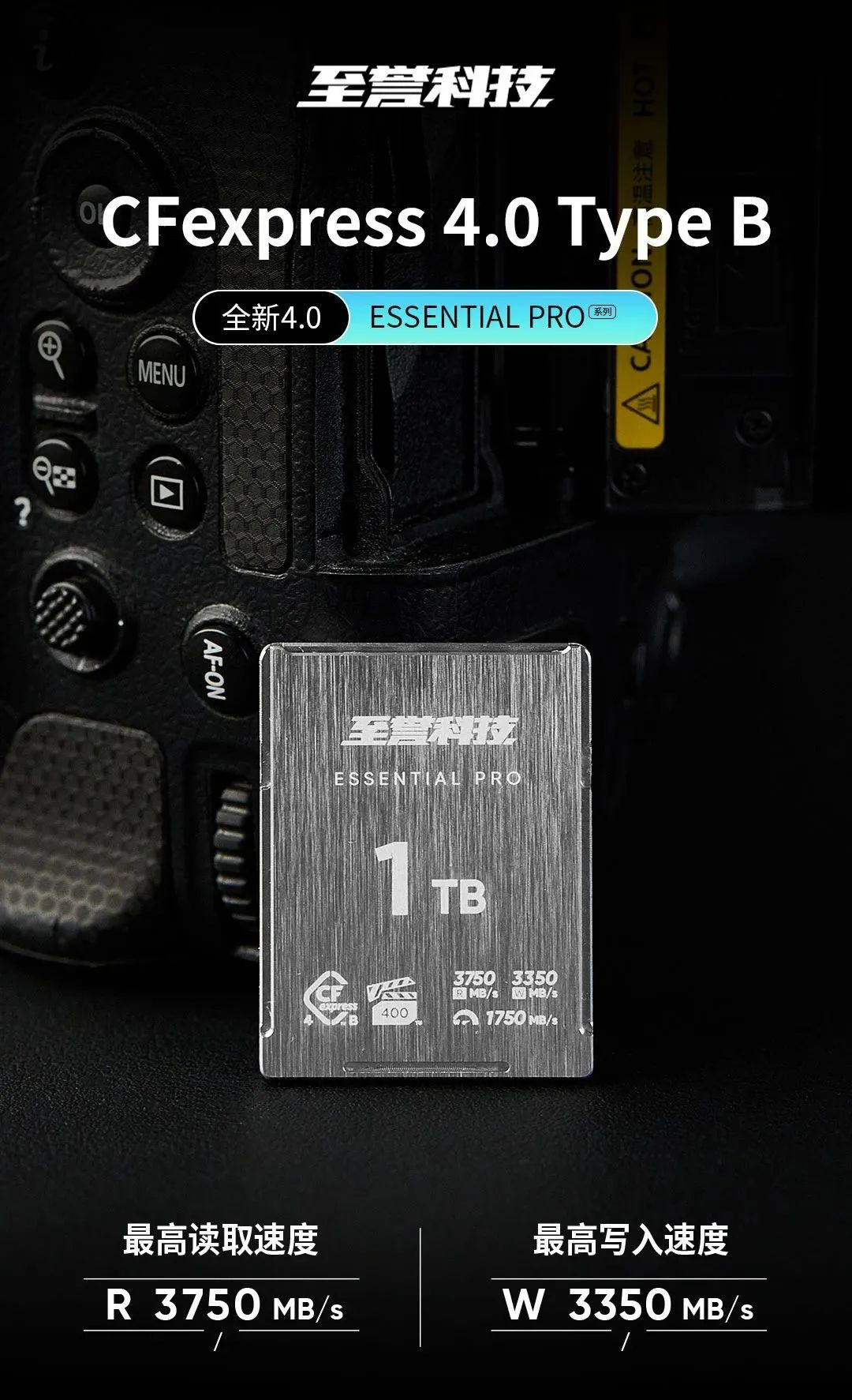 6月16日,至誉科技推出了一款名为ESSENTIAL PRO CFexpress 4.0 Type B存储卡。这款存储卡能够在-40°C至+85°C的温度范围内正常工作。其最高读取速度达到了3750MB/s,写入速度为3350MB/s,并且已通过VPG400认证。