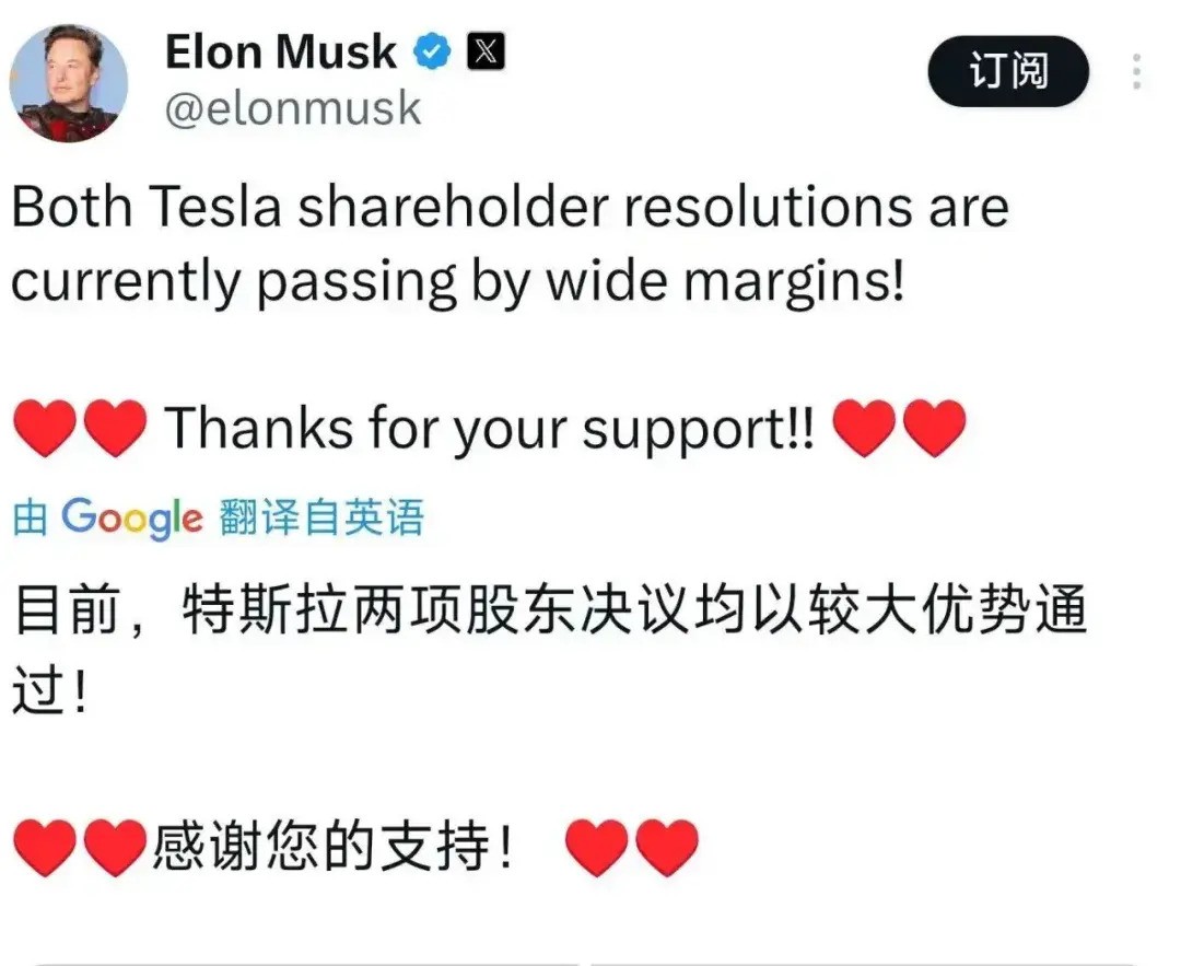 在6月14日的特斯拉股东大会上,马斯克成功获得了72%的股东投票支持。这一决议允许他获得高达560亿美元的薪酬方案,尽管在此之前该方案曾被否决。此外,特斯拉总部迁至得克萨斯州的决定也得以通过。