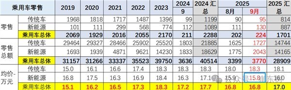 2023年,中国新能源汽车均价还高达18.4万元,2024年均价下降到17.1万元,2025年前9个月均价16万元。