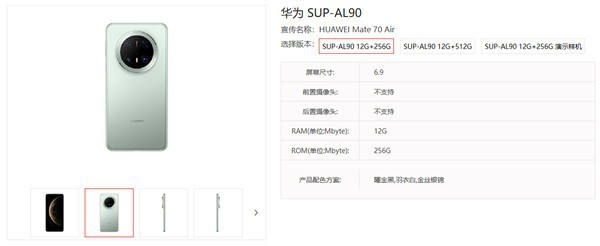 根据此前爆料,华为Mate 70 Air将采用6.9英寸左右屏幕,分辨率1.5K,机身厚度只有6.x mm,后置1/1.3英寸主摄+红枫镜头。