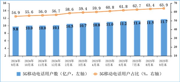 与此同时,5G用户也快速发展。截至9月末,三家基础电信企业及中国广电的移动电话用户总数达18.28亿户,比上年末净增3795万户。