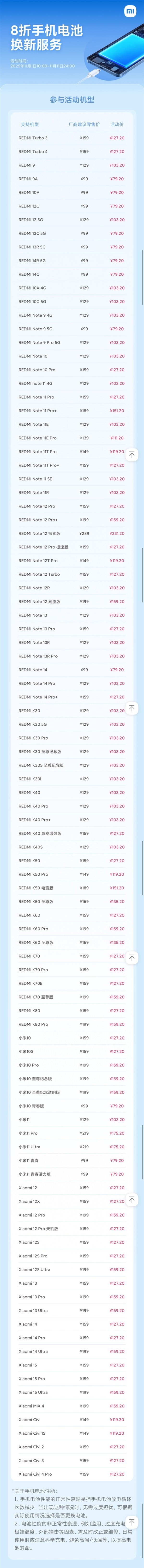 4 小米79元换电池又来了:覆盖99款机型史上最多