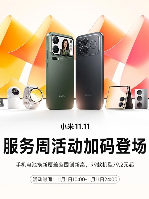 即日起,小米正式启动11.11服务周核心活动,电池换新服务以79.2元起的亲民价格回归,更创下覆盖99款机型的历史纪录。