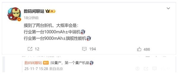 博主数码闲聊站爆料,荣耀将是第一家量产10000mAh手机的品牌,同时也是第一家量产9000mAh性能旗舰的品牌。