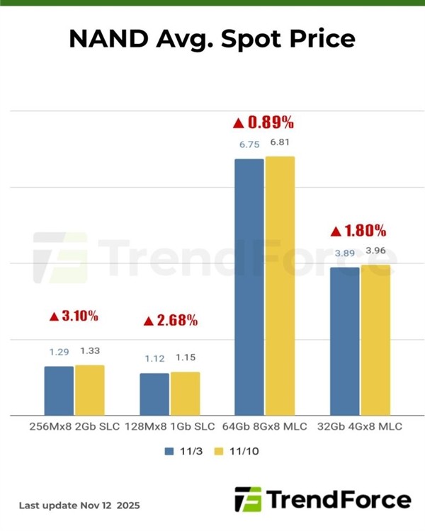 NAND Flash现货市场则受到合约市场强劲拉动的带动,市场情绪进一步增强,报价上涨幅度和频率明显增加。