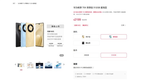 华为畅享70X尊享版正式发布,256GB版本首发价1899元、512GB版本首发价2199元,将于11月27日10:08首销。
