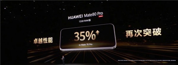 按照余承东在发布会上介绍的那样,Mate 80 Pro(12GB 内存)手机相比上一代 Mate 70/Pro性能提升35%。