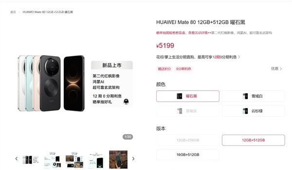 具体来看,Mate 80 12GB+512GB和16GB+512GB版本现货销售,但是12GB+256GB版本处于缺货状态,起售价是4699元。