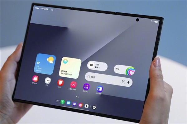配置方面,三星Galaxy Z TriFold外屏尺寸为6.5英寸,展开之后内屏为10英寸,相当于一个平板,搭载骁龙8 Elite for Galaxy处理器,内置了5600毫安时电池。