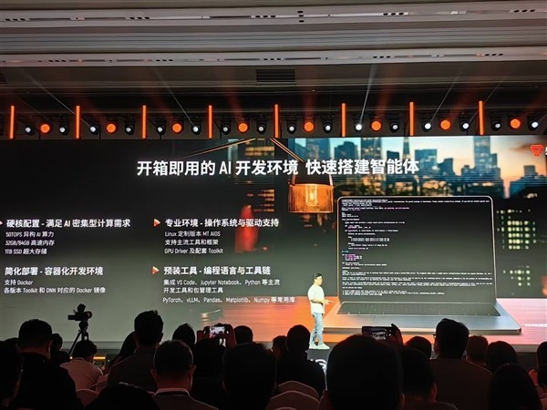 内置AI开发环境、AI数字人分身、AI智能办公助手等功能,软件层面提供“摩音笔记”等应用,支持个人知识库构建、AI文档处理及PPT自动生成。