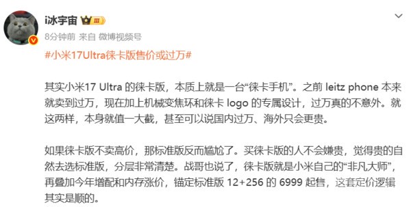 2 小米17 Ultra徕卡版或定价过万 博主:真的不意外