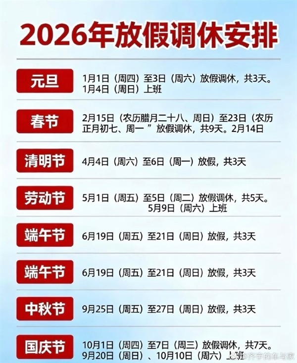 4 2026放假日历一图!元旦假期来了:本周纯享上四休三 你期待吗