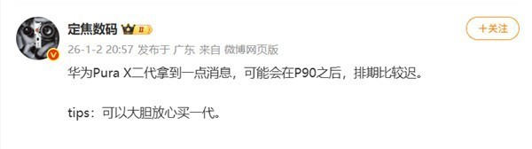 Pura 90系列预计将延续此前发布节奏率先登场,而Pura X2的推出排期相对滞后,预计延期至2026年第二季度。