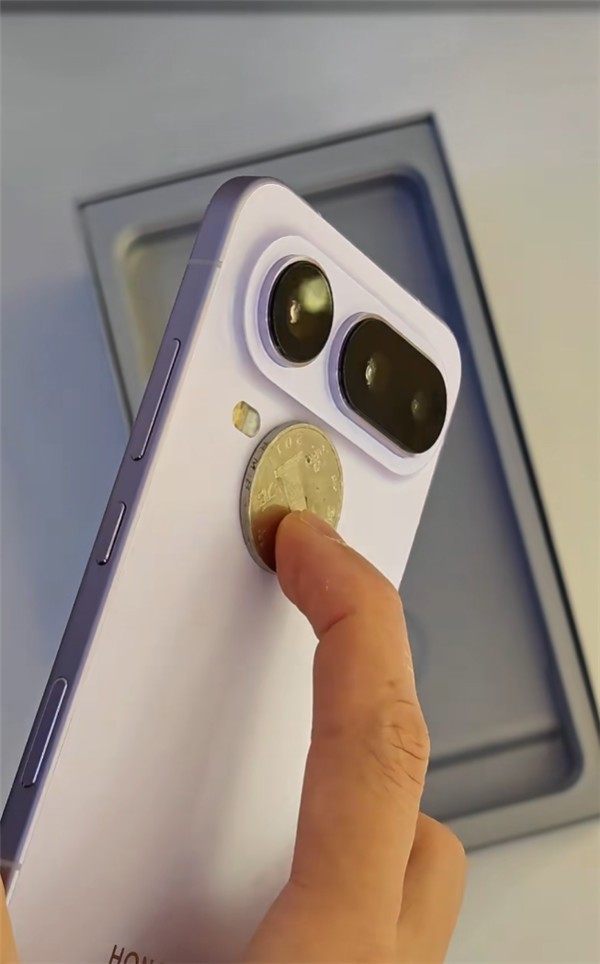 外观上,荣耀Magic8 Pro Air后摄Deco采用荣耀V20经典感叹号设计,模组整体并未明显凸起,厚度基本与一枚1元硬币相当。