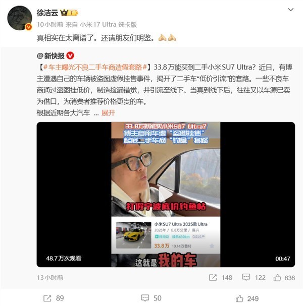3 33.8万能买到二手小米SU7 Ultra?车主曝光不良车商造假套路