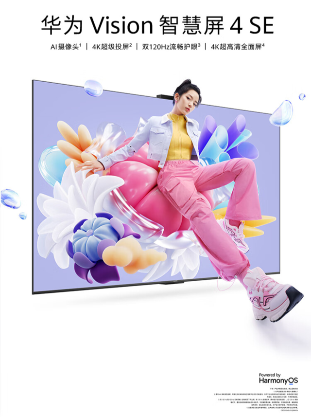 华为 Vision 智慧屏4 SE开启预售,支持4K超清画质投屏、新一代高清AI摄像头和鸿蒙HarmonyOS 4.2操作系统。该产品搭载了自研大核芯片和升级后的HDMI 2.1接口,支持4K 120FPS解码、ALLM自动低延迟、VRR可变刷新率等功能。此外,智能护眼技术也是其一大亮点,75英寸版配备2个全频单元+2个低频单元,65英寸和55英寸版则配备两个全频单元。