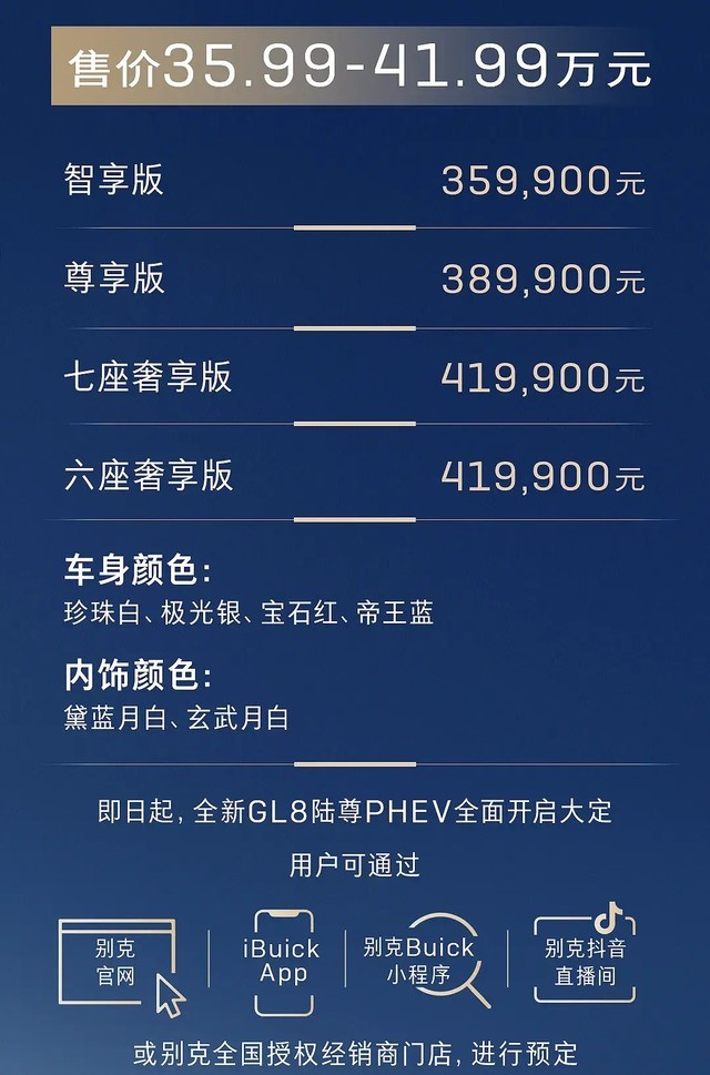 4月24日,别克GL8陆尊PHEV车型正式上市。新车提供了六座和七座两种不同的座舱布局,并搭载了3个配置共计4款车型,全部采用艾维亚版本,售价在35.99-41.99万元之间。