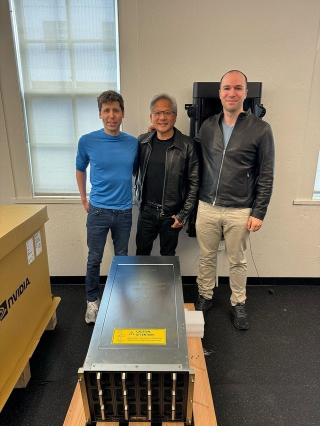 4月25日,OpenAI总裁兼联合创始人格雷戈里·布罗克曼在X平台上表示,英伟达CEO黄仁勋已经亲自将全球第一款AI超级芯片DGX H200交付给了OpenAI。布罗克曼还分享了与黄仁勋、OpenAI CEO萨姆·奥特曼以及 DGX H200的合影。
