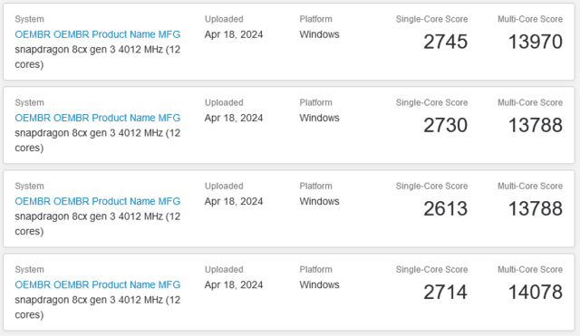 值得一提的是,之前我们就报道过在 GeekBench 跑分库中出现了一台搭载高通骁龙 X Plus 芯片的 Surface Pro 10 设备。因此,我们可以推测这次被测试的笔记本很可能是搭载了高通骁龙处理器的 Surface Laptop 6。
