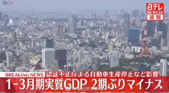 据日本电视报道,2024年第一季度,剔除物价变动因素后,日本国内生产总值(GDP)实际增长率为负2.0%,同比下降了0.5%。这一结果表明,该季度的经济增长已连续一个季度下滑。丰田公司的违规行为以及制造行业的活动减少被认为是导致这种经济状况的主要原因之一。在GDP中占...