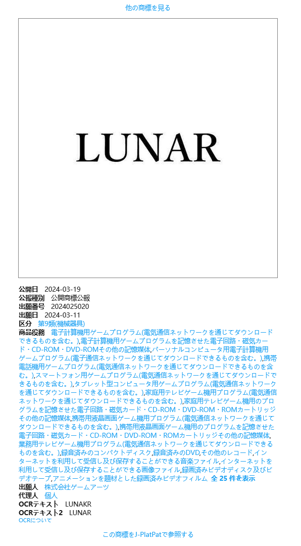 3月11日,游戏开发商Game Arts在日本更新了经典角色扮演游戏《露娜》的商标。这个商标原于2002年3月注册,并在2005年10月通过,然而即将在2025年过期。值得一提的是,Game Arts最近还推出了《格兰蒂亚HD合集》,此次重新注册商标或许只是为了防止商标过期。