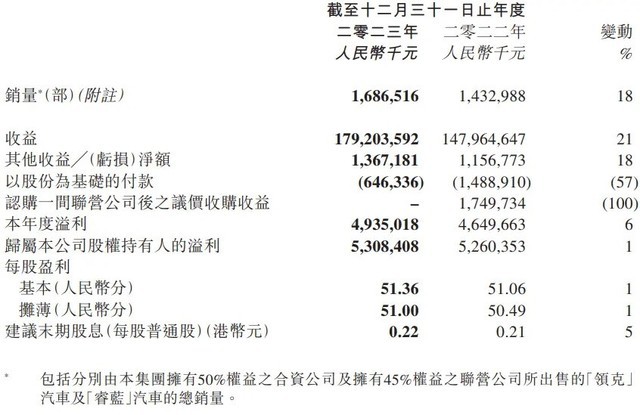 吉利汽车控股近日披露了2023年财报。数据显示,该公司的归母净利润同比大涨51%,达到53.08亿元。同时,该公司实现营业收入1,792亿元,同比增长21%,创历史新高。