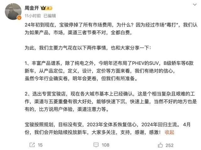 在销售渠道方面,宝骏已在大中城市筛选出专营店,并基本完成确认工作。周筇认为这种策略有助于快速下沉市场并实现销量快速增长,但也带来了用户体验保持和渠道注意力分配等挑战。